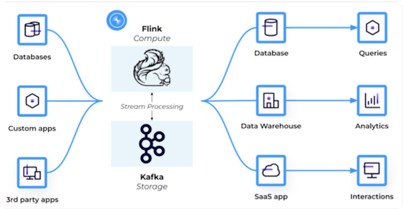 - Serving patterns: SQL queries on stateful tables, sink connectors to search engines, or interactive queries for millisecond latency.